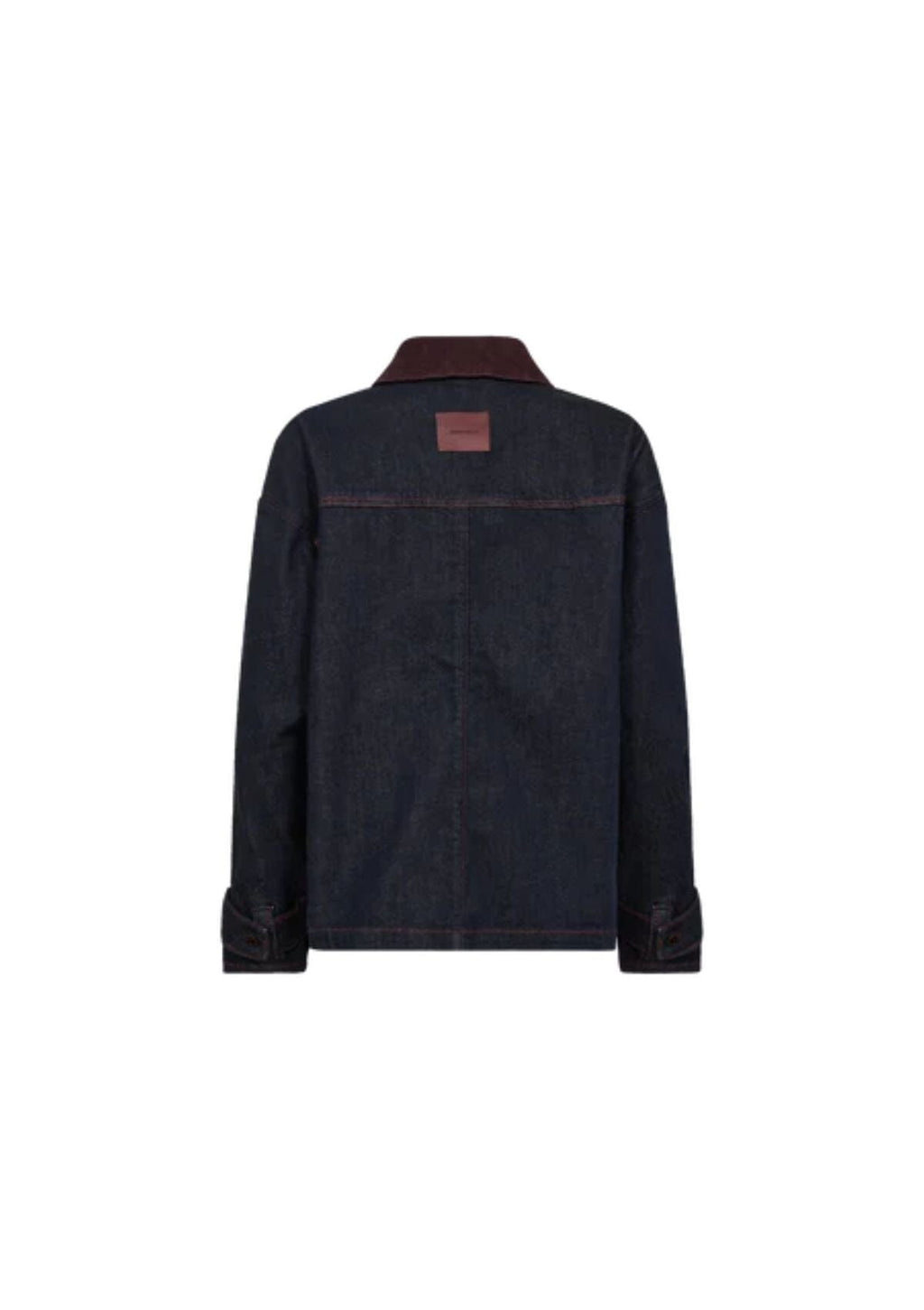 This modern jacket blends classic tailoring with edgy details, featuring a refined collar and a sleek hidden front closure. Utility-inspired elements like flap pockets and strap button cuffs add a contemporary feel, while the leather badge at the back and contrast fabric at the neckline enhance its sophisticated design. The contrast stitching provides a bold finish, making this jacket a versatile layering piece for both casual and elevated outfits.
