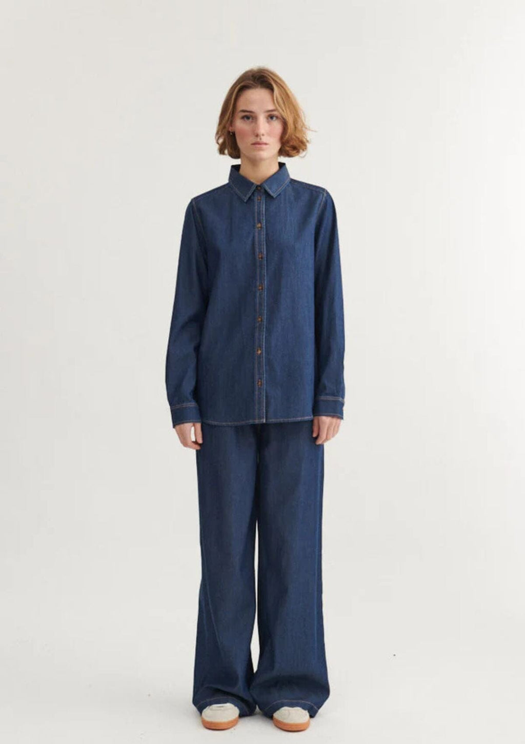 The Bine LS Shirt is a lightweight and elegant shirt, crafted from soft tencel that feels smooth and breathable against the skin. Designed with a relaxed, loose fit, it drapes naturally for a comfortable silhouette that moves with you throughout the day. The buttoned placket and long sleeves add subtle details and a polished finish, making the shirt versatile for both casual and more refined outfits. Perfect to wear on its own or layered under jackets, the Bine LS Shirt combines modern elegance with everyday comfort, making it a timeless piece that fits effortlessly into any wardrobe. We love it styled with the matching skirt.