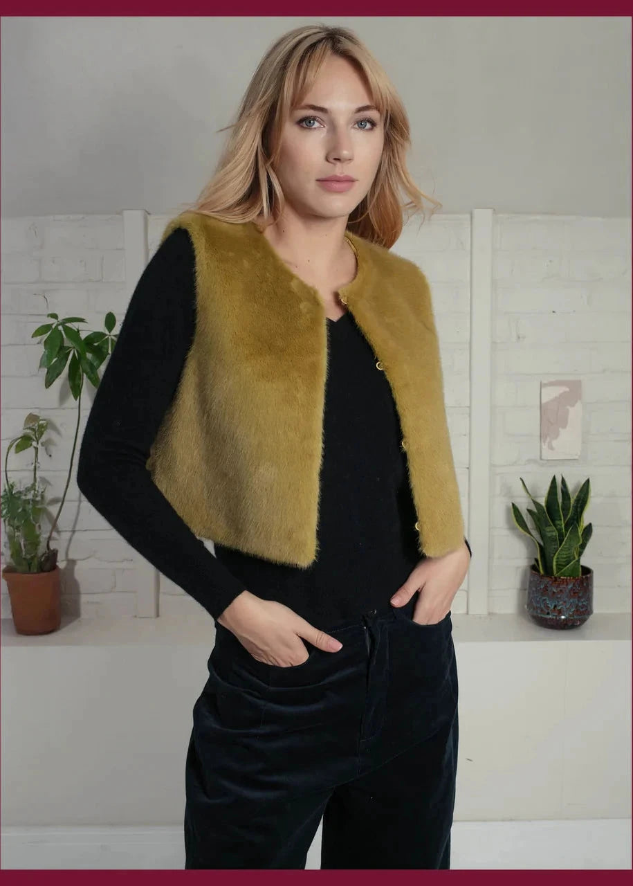 • Embrace the plush comfort and stylish allure of the Edelweiss Faux Fur Gilet, and make it your signature piece this season