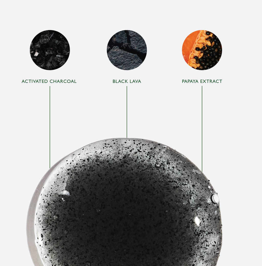 Biodegradable particles from black lava and activated charcoal gently remove the build-up of dead skin cells and traces of pollution. Vitamin C and mineral-rich Brazilian papaya extract effectively cleanses and clarifies to leave skin feeling fresh, clean and smooth. Vegan Cruelty-Free 92.4% Natural Paraben-Free Sulphate Free No Artificial Colorants