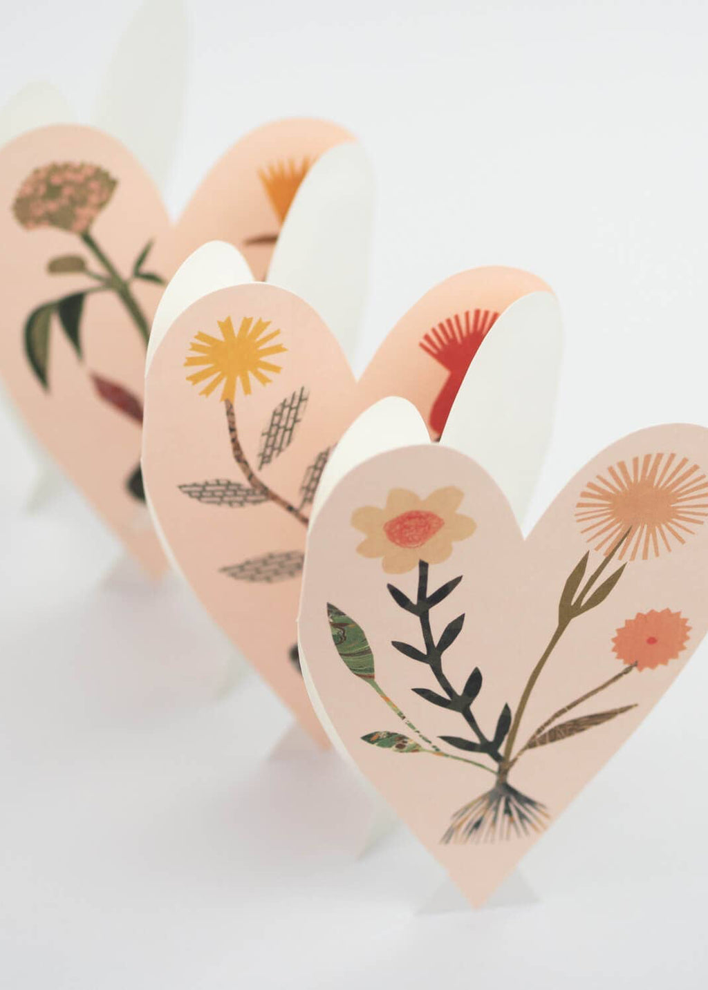 A concertina of beautiful hearts! Featuring hand-collaged whimsical wild flowers in a beautiful natural colour scheme. This fold-out card is perfect for displaying in a window, on a mantelpiece, shelf, or on the wall. It is self-standing when extended and also looks lovely displayed flat on a wall. The concertina card is completely collapsible and comes in a standard C6 envelope size perfect for posting. Each is made from eco-friendly card and comes with an envelope made from a mix of recycled paper and citrus peels that would otherwise be headed to landfill. Show that special someone they are loved with this unique card and present a bouquet of flowers that will last a lifetime.