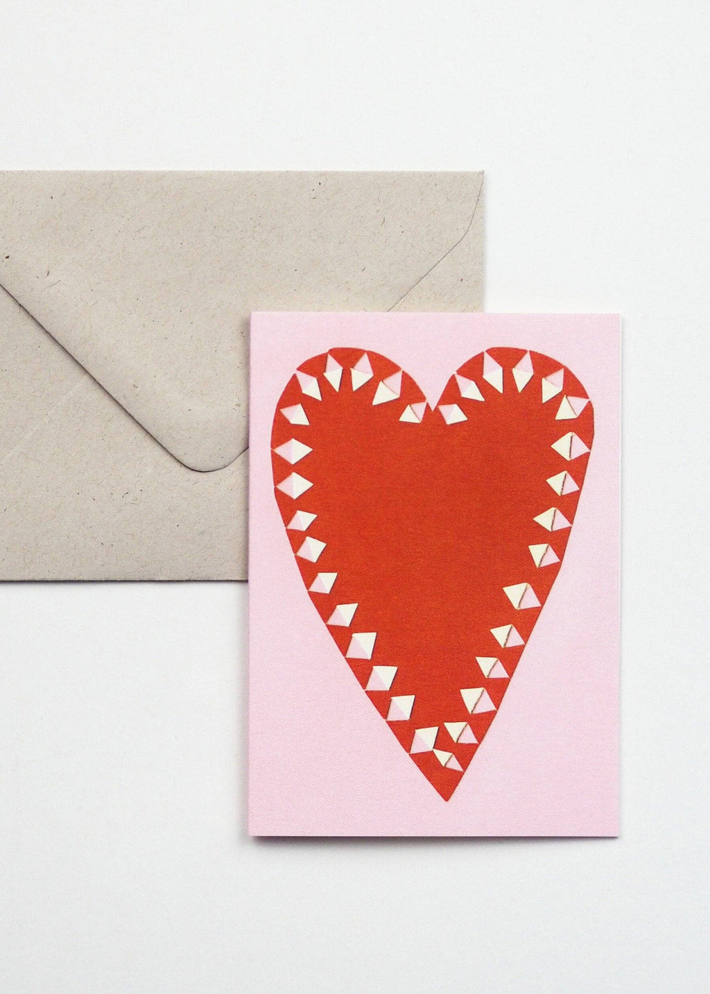 A smaller card, but this little heart represents a lot of love! Printed on high quality 300gsm card. Each card measures 10.5cm x 7.5cm when folded and comes in a handsome grey coloured envelope, the inside is left blank for your own message.