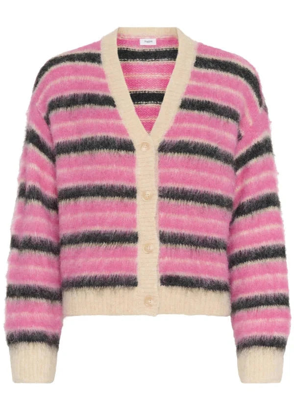 This women's cardigan features a relaxed fit and plush texture, designed for comfort and versatility. A V-neckline and button front add a classic touch, while long sleeves and hip length make it ideal for layering year-round.